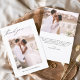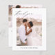 Wedding Thank You Cards that have a photo pictures and text on the front and back. The Thank you cards contain a modern hand lettered cursive script typography that are elegant, simple and modern to use after you minimalist simple wedding day celebration.