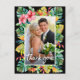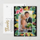 If you had a tropical themed wedding, this is the perfect THANK YOU postcard for your wedding photo. Your photo is surrounded by watercolor tropical flowers and foliage. Thank you handwritten in a brush script over your vertical photo. Gold "Thanks" on the back with a personal message (use message provided or write your own), ending with "with love," in the same brush script and hibiscus flowers. Black gradient overlaps photo so white script stands out. You can eliminate it if it's not needed.
