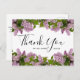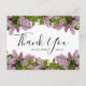 Classic wedding thank you post card template features a pink and purple flower design on the front, and a customizable message at the back. You can personalize it with the customize it button. Send out your wedding thank you message as newly weds to your friends and family using this beautifully, simple thank you wedding photo postcard with the words "thank you" written in a white handwriting script text overlay.