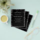 A modern black background, decorated with faux silver sparkles. Personalize and add your names and your wedding day timeline. White text.