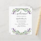 White elegant background, decorated with lavender florals, flowers and eucalyptus greenery. Personalize and add your names and your wedding day timeline.