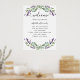 White elegant background, decorated with lavender florals, flowers and eucalyptus greenery. Personalize and add your names and your wedding day timeline.