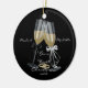 Our First Christmas Ornament features a stylish pair of champagne glasses with a set of wedding rings set on a black background! Personalize with your information and date and you're all set to go! Wonderful dated keepsake gift for your first christmas and a great addition to you christmas ornament collection.