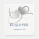 This paper napkin is shown in a Navy and White colour with the two hearts print, with sample names.