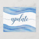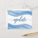 This wedding update, or postponement, postcard is an efficient and simple yet elegant way to notify guests of your change in plans.The graceful design is hand painted watercolor in shades of light blue, classic blue and navy blue. The abstract design resembles ocean waves, perfect for a beach, ocean or nautical theme event.