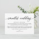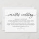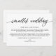 Modern simple wedding update announcement card. Design features calligraphy script ''smaller wedding'' and details in trendy capital lettering.