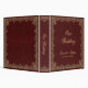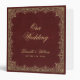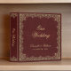 This elegant wedding design with a vintage air, with burgundy and gold wedding colours, has vintage baroque gold frames on all sides, on a a burgundy (dark red) background. All text can be personalized and has a golden colour similar to the gold decorations. The title "Our Wedding" and the names are written in an elegant calligraphic script, the rest in caps.