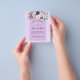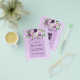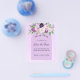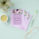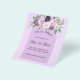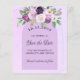 A modern and elegant Save the Date for a wedding. Watercolored violet, lavender background, and an arch frame. Decorated with violet and purple flowers. Personalize and add a date and names. The text: Save the Date is written with a large trendy hand lettered style script.