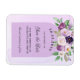 A modern and elegant Save the Date for a wedding. Watercolored violet, lavender background, and an arch frame. Decorated with violet and purple flowers. Personalize and add a date and names. The text: Save the Date is written with a large trendy hand lettered style script.