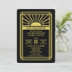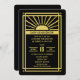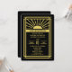 This 1920s wedding vow renewal invitation is an art deco design with a gold sunburst pattern being the focal point with your names on a gold band right below. All your vow renewal details appear below with art deco details all around on black. This is a wonderful black and gold art nouveau or roaring 20s style invitation for a perfect start to a vow renewal ceremony. Copyright henishouseofpaper