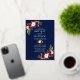 Modern Elegant Watercolor Burgundy Floral Wedding Invitation includes burgundy roses, pink roses, red roses and botanical greenery. Gold Foil Frame. Navy Blue Background. Photo Back.