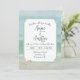 Ocean watercolor painting with starfish in corner slit frame for wedding invitation.