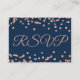 Wedding Website RSVP Rose Gold Confetti Navy Enclosure Card
