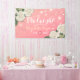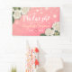 Wedding Welcome Banner Templates - Elegant White lovely Watercolor Hydrangea Flowers and String Lights on Pink Gradient Background.