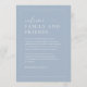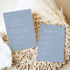 Welcome your guests in style with this dusty blue wedding weekend timeline card. This wedding welcome bag note allows you to easily create a personalized wedding itinerary for your special weekend, ensuring your guests have all the information they need. The minimal and elegant design is perfect for any wedding style and the perfect addition to your wedding welcome bag for when your guests arrive to check into their room!