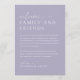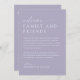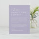 Welcome your guests in style with this lavender wedding weekend timeline card. This wedding welcome bag note allows you to easily create a personalized wedding itinerary for your special weekend, ensuring your guests have all the information they need. The minimal and elegant design is perfect for any wedding style and the perfect addition to your wedding welcome bag for when your guests arrive to check into their room!