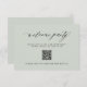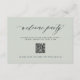 Simple elegant minimalist forest sage green wedding welcome party details enclosure card with chic calligraphy script and automatically generated QR code.