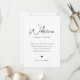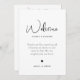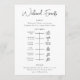 Modern minimalist wedding welcome and weekend event timeline program card. Template features, welcome message on front and weekend itinerary timeline on back. Wedding day icons timeline includes rings, cocktail, meal setting, cake, music note and confetti.