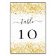 An elegant white background, decorated with faux gold glitter dust. Personalize and your table numbers.