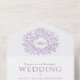 Purple hand-drawn growing leaf botanical art wedding all-in-one invitation. Personalize this detachable reply wedding invitation with your own wedding ceremony details, and add your meal options to your detachable replies. Simple leaf design circling your own monogram initials. Other colours and matching wedding items available. © Original leaf drawing and design by Sarah Trett for www.mylittleedenweddings.com on Zazzle.