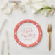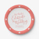 Wedding white script and coral hearts paper plates
