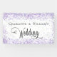 A stylish white background. Decorated with violet, lavender coloured confetti. Personalize and add your names. With the text: Wedding.