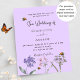 A violet background. Decorated with bees and painted wildflowers in violet and pink. Personalize and add your names and the details.