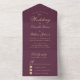 Wedding Wine Colour Golden Elegant Script RSVP All In One Invitation