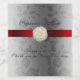 Wedding Wine Label with Red Ribbon on Silver and a beautiful white Gardenia. Personalize for any event or occasion.
