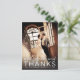 Easily and quickly personalize this designer professionally printed thank you postcard here and now online by just typing over the example text and adding your own photograph. Click on the small example photo thumbnail above right to upload your own image from your hard drive or phone/tablet.
