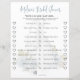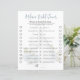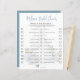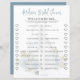 This design features a wedding bridal shower game, would she rather template, simple minimalist classic calligraphy, a custom bridal shower activity paper, blue floral wedding dress gown, custom bridal shower party supplies, simple fill in paper sheet, an elegant calligraphy typography, blue rose greenery foliage botanical, custom bridal shower printable game
