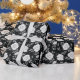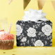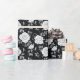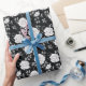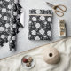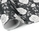 Wrapping paper is shown with a lovely black and white roses floral print.