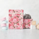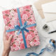 Wrapping paper is shown with a lovely pink roses floral print.