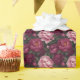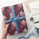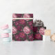 Wrapping paper is shown with a lovely mauve and plum coloured peony print.