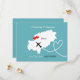 A fun save the date for couples getting married in Ibiza with a white silhouette map of Ibiza on teal with sweet red love hearts and so easy to customize with your personal names and message