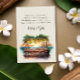 Sunset coastal wedding welcome bag card with editable poem. This charming design features a watercolor scene of a wooden beach bar or tiki bar draped with fairy lights and palm leaves, overlooking the ocean at sunset. Perfect for a casual or boho beach wedding, coastal chic or classy beach resort destination wedding. Background and text have a natural and brown colour palette, which you are welcome to change in the design tool. Co-ordinating wedding stationery and day of event decor can be found in our Sunset Beach Wedding collection,