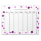 Blank weekly planner chart, schedule, with columns for the days of the week. Write in the month and year at the top as needed. Decorated with pink and purple polka dots around the border. Thank you for shopping at CherylsArt on Zazzle.