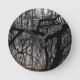 A weeping willow tree in winter with sunset reflecting on the lake.