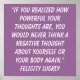 "If you realized how powerful your thoughts are, you would never think a negative thought about yourself or your body again." Felicity Luckey