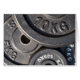 Photograph of several weightlifting plates with customizable text, "No Excuses."