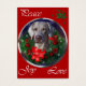 Wonderful original art of a Weimaraner encircled by a holiday wreath. Lovely Christmas gifts for Weim lovers. Variety of Holiday merchandise. Products include Christmas cards, ornaments, and xmas apparel.