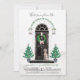 Featuring a sweet Weimaraner wearing a pink bow tie! A classic front porch decorated for the holidays, featuring Christmas trees with stars flanking the elegant black door, a pine wreath with pink gingham bow, and lanterns topped with roses and holly. In the style of Magnolia | modern farmhouse | classic elegant. 3 COLORS OF PLAID FOR THE BACK ARE IN THE DESIGN (dark green as shown, black, or pink - just edit and hide the image of the colour you don't want).