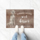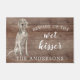 Funny beware of the wet kisser" Weimaraner Dog door mat set on a rustic faux background. Visit our shop to view a large assortment of dog breads