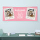 A baby pink background makes this a great banner for a baby shower. You can add text on each photo or delete the extra text. If you are having a virtual celebration or a drive by parade, you can place this on your front lawn or window to let the neighbourhood know about the celebration. Being stuck at home doesn't mean you can't highlight the person of the day.