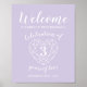 Welcome guests to your 3rd wedding anniversary party with this modern simple line art heart poster, available in several sizes. The design features white typography on crystal light purple with the words in script font and a line art heart gemstone with the words welcome celebration of 3 years of love. Personalize with your own names, anniversary year and wedding date underneath. The third wedding anniversary is associated with the gemstone crystal and the heart symbolizes love. Other matching anniversary items available. Line art and design by www.mylittleeden.com on zazzle.