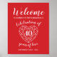 Welcome guests to your 40th ruby wedding anniversary party with this modern simple line art heart poster. The design features white typography on red in script font and a line art heart gemstone with the words welcome celebration of 40 years of love. Personalize with your own names, anniversary year and wedding date underneath. The 40th wedding anniversary is associated with the gemstone ruby and the heart symbolizes love. Other matching anniversary items available. Line art and design by www.mylittleeden.com on zazzle.