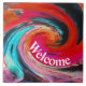 This vibrant welcome tile is a stunning way to welcome guests to your rental home. This groovy ceramic tile features a bright swirled tie dye pattern. "Welcome" curves along with the circular pattern and can easily be customized if you desire.