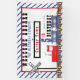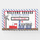 Modern, fun steam locomotive choo choo train striped "Welcome Aboard the Birthday Express" birthday party design which can be modified for any age child. The design is complimented with a red frame and a blue and white striped background. Original design by Holiday Hearts Designs (all rights reserved).