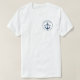 Set sail in style with this classic nautical tee featuring a navy anchor design with "Welcome Aboard" on the back alongside a customizable boat name and port location. The front displays a pocket-style circular anchor logo with an editable captain name and boat name. A perfect monogram keepsake for boat owners, captains, and their crew. Edit all text to personalize for your vessel.