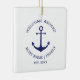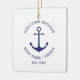 Custom Boat name or Family name, Welcome Aboard, nautical navy blue anchor white Christmas Ceramic Ornament